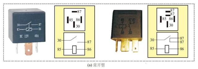 繼電器按接通及斷開方式可分為常開繼電器、常閉繼電器,以及常開、常閉混合型繼電器,常見的幾種繼電器如下圖所示。